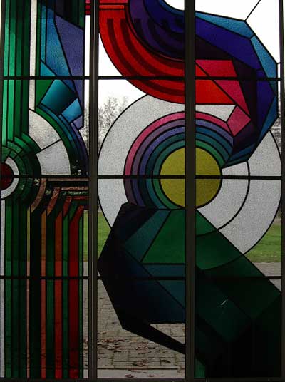 Bijzonderheden: Het is de bedoeling dat het raam wordt opgenomen in de beoogde nieuwbouw van het VMBO. Door de omstandigheden in het depot kon slechts een deel van het werk gefotografeerd worden. De kunstenaar heeft zich voor dit raam laten inspireren door het verhaal van Jacob en de Engel in het eerste boek van het Oude Testament: Genesis 32, 23 - 33. Hoe de voorstelling en de tekst van Genesis zich tot elkaar verhouden, is niet goed te beschrijven nu het raam zich in depot bevindt.