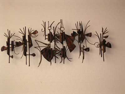 Aart van den IJssel Aart van den IJssel (Den Haag 1922 - Voorburg 1983) volgde, opgeleid als huisschilder, in de avonduren schilderlessen aan de Koninklijke Academie. Na de Tweede Wereldoorlog nam hij les in beeldhouwen aan de Haagse Vrije Academie. Van den IJssel ontdekte dat hij zijn ideeën beter in metaal dan in steen kon vormgeven. Vanaf 1954 had Van den IJssel een atelier in Voorburg, dat door toedoen van Frits Becht, kunstverzamelaar, en Wim Beeren, de latere museumdirecteur, een centrum van beeldende kunst werd. Zij richtten de Artistieke Werkgroep "De Nieuwe Ploeg" op en organiseerden tussen 1951 en 1954 in park Sonnenburgh en in de tuin van Hofwijck buitententoonstellingen (toen een nieuw verschijnsel) van met materiaal en techniek experimenterende kunstenaars. Van den IJssel had in 1954 een solotentoonstelling in Hofwijck die hem veel publiciteit en opdrachten bezorgde. Hij werkte samen met de architect J.J.P. Oud, voor wiens bouwwerken hij objecten maakte. In 1982 had hij zijn laatste grote expositie in het Haagse Pulchri, waar hij ook zijn werkwijze met technische tekeningen verduidelijkte. Van den IJssel is altijd door de natuur gefascineerd geweest, vooral door insecten en paarden, die hij beide graag voorzag van pantsers en stekels "ter bescherming". Daarnaast zijn zonneruiters een veelvoorkomend thema. Behalve verbeeldingen van de prachtige maar wrede dierenwereld maakte Van den IJssel heel andere objecten, zoals crucifixen, daartoe geïnspireerd door kruizen op Franse kerkhoven. Over Van den IJssel bestaat een monografie waaraan deze informatie is ontleend: Saskia Gras, Aart van den IJssel, kwetsbaar gepantserd. Serie Haags Palet deel 10.Uitgave van Stichting Haagse Beeldende Kunst en Kunstnijverheid. Voorburg, 2004. ISBN 90 - 70003 - 10 - 4.