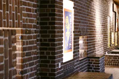 Bijzonderheden: Het reliëf bestaat uit acht nissen en negen blokken, steeds rechthoekig en van diverse formaten; de steen is dezelfde als voor de hele hal is gebruikt. In 2000 zijn een paar nissen omgebouwd tot vitrines.