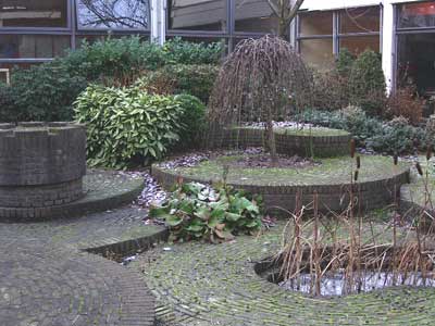 Geschiedenis: De tuin met het metselwerk is aangelegd bij de derde en laatste uitbouw van de school in 1980, in het kader van de percentageregeling. Het project is uitgevoerd door leerlingen van de afdeling metselen onder leiding van hun docenten, de heren J. Hoitink en H.J. Klein Gunnewiek.