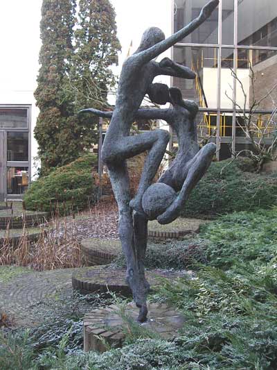 Gooitzen de Jong Gooitzen de Jong (Enschede 1932 - Enschede 2004) studeerde van 1950 tot 1952, als eerste leerling, aan de AKI (onder anderen bij Aldo van Eyck) en aan de Rijksacademie in Amsterdam bij Esser van 1952 tot 1957. Daarna maakte hij studiereizen naar Italiė en Frankrijk. Sinds 1958 was De Jong werkzaam als zelfstandig beeldhouwer; hij werkte in klei, gips, brons, hout en hardsteen. Daarnaast maakte hij tekeningen, aquarellen en schilderijen en gaf beeldend vorm aan architectonische ruimtes. In 1962 werd hij op initiatief van burgemeester Thomassen benoemd tot stadsbeeldhouwer van Enschede; na vijftien jaar trad hij als zodanig terug. Hij had intussen de stad Enschede verfraaid met beelden als De Trommelslager en Leda en de zwaan. In opdracht vervaardigde bronssculpturen heeft hij verder geplaatst in o.a. Amersfoort, Utrecht, Den Haag, Losser, Borne en Deventer. De Jong exposeerde, vaak in groepsverband, onder andere in het Stedelijk Museum te Amsterdam, op de Biėnnale van Parijs 1962, op de Achtste Biėnnale van Middelheim Antwerpen, op Sonsbeek '68 te Arnhem, in het Provinciaal Museum Zwolle in 1980 en in 2001 in Zutphen. In 1956 ontving hij de Gerard Terborchprijs, in 1957 de zilveren medaille en in 1959 de gouden erepenning van de Prix de Rome en tenslotte in 1985 de Charlotte van Pallandtprijs. De Jong was van 1972 tot 1984 docent beeldhouwen en van 1989 tot 1997 docent tekenen aan de avondopleiding van de AKI en van 1983 tot 1990 docent beeldhouwen aan de dagopleiding van de Academie Minerva te Groningen. In de laatste periode van zijn leven heeft hij een oeuvre als kunstschilder opgebouwd. Een selectie van zijn tekenwerk is opgenomen in de collectie van het Rijksprentenkabinet te Amsterdam.