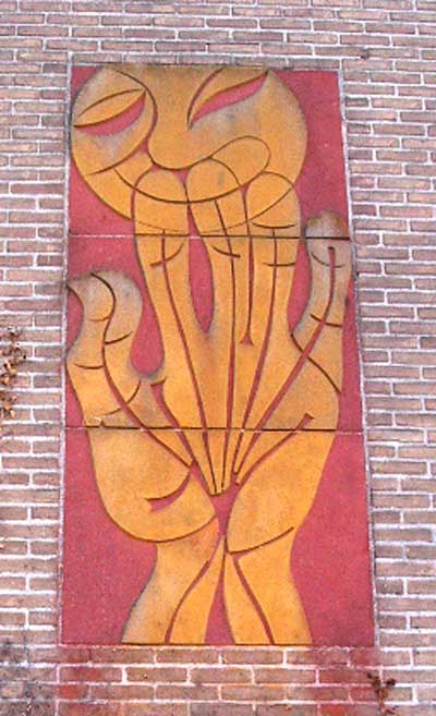 Geschiedenis: Gemaakt en geplaatst in het kader van de percentageregeling bij de totstandkoming van het gebouw in 1971.