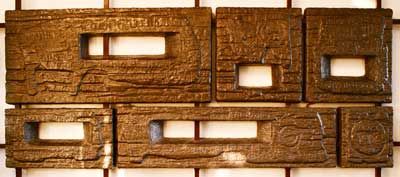 Bijzonderheden: De sculptuur bestaat uit zes blokken (door een staalconstructie met elkaar verbonden); vijf met een open middenruimte en een (rechtsonder) geheel gesloten; in de blokken zijn teksten (namen, woorden) aangebracht; elk blok heeft zijn eigen thema: aan de kant van de hal zijn dat (van boven naar beneden en van links naar rechts: a) tijd en ruimte, rekenen en tellen; b) natuurkunde en natuur; c) muziek en dans; d) eigentijdse geschiedenis; d) verkeer; e) vrede en liefde; de andere kant van het werk is afgeschermd (en dus niet nader te beschrijven) door een later geplaatste afscheidingswand.