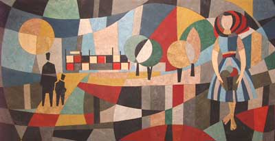 In het trappenhuis (de school heeft twee trappen; dit werk en het volgende hangen als het ware in spiegelpositie)