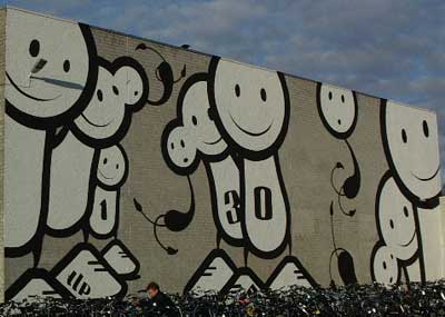 The London Police Het kunstenaarscollectief The London Police bestaat sinds 1999 en is een gezelschap van drie graffiti- en stickerkunstenaars. Oorspronkelijk afkomstig uit Londen en San Francisco, opereerde de groep als "straatkunstenaars" vanuit Amsterdam. Daar doken hun getekende, geschilderde en op papier geplakte poppetjes ('Lads') overal op. Nu exposeert TLP ook in officiële galeries in binnen- en buitenland. In november 2003 heeft de BBC in een reportage aandacht aan "the streetart" van TLP besteed.
